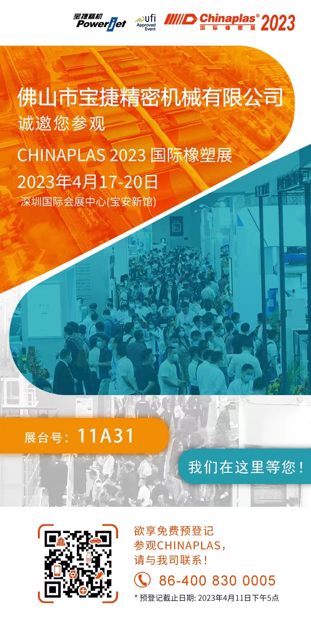 CHINAPLAS 2023國際橡塑展即將盛大開啟,寶捷誠邀你蒞臨11A31展位參觀交流!作為我司邀請(qǐng)的貴賓,您將獲得“免費(fèi)入場碼”,可豁免RMB80元的入場費(fèi),請(qǐng)通過以下“免費(fèi)門票領(lǐng)取方法”完成觀眾預(yù)登記手續(xù)。
