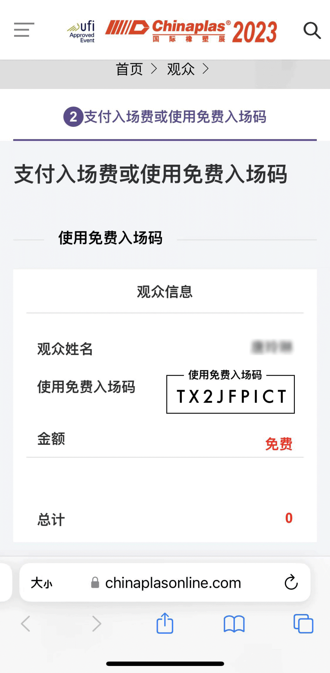 提交后,跳轉(zhuǎn)至[支付入場費(fèi)或使用免費(fèi)入場碼]頁面,將復(fù)制的免費(fèi)入場碼——TX2JFPICT,粘貼至輸入框中并提交。