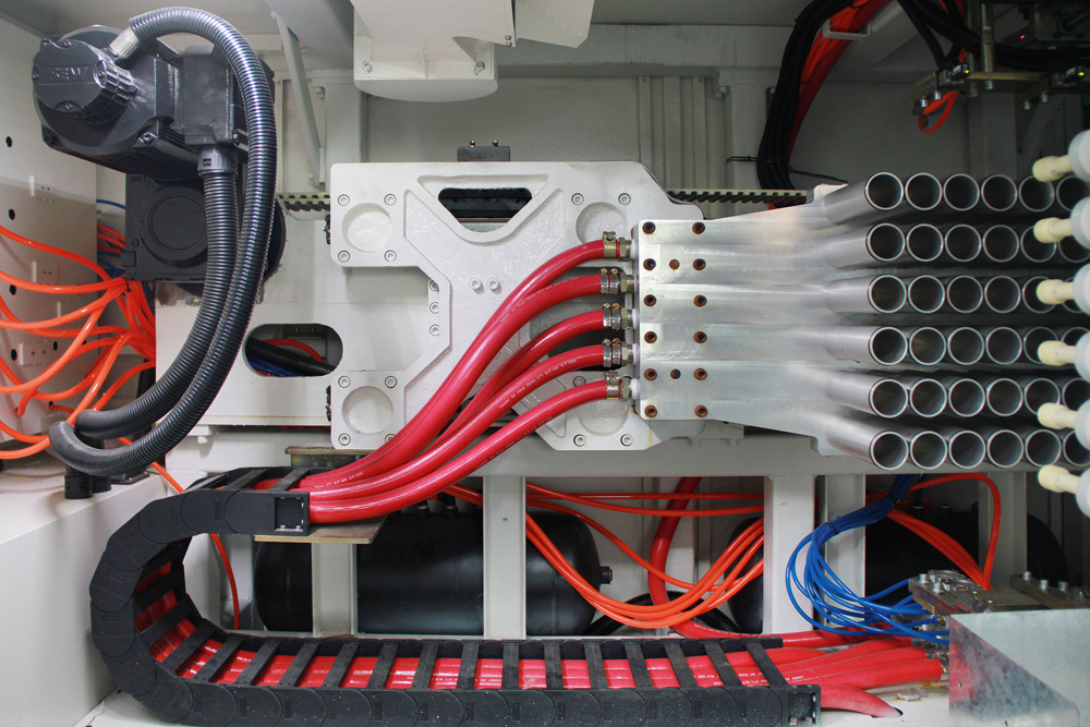 鎖模部分全封閉鈑金結(jié)構(gòu),符合衛(wèi)生和溫控要求。加大頂出力和頂出行程,適應(yīng)瓶坯頂出要求。