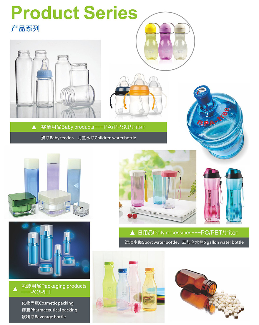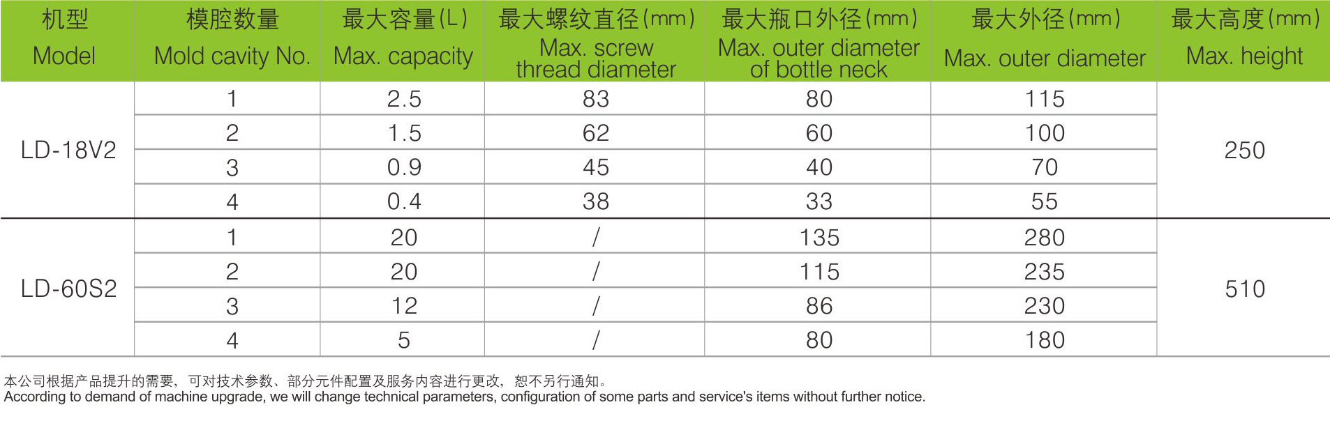 瓶口定位精,瓶子輕量化,合模線不顯眼;適應(yīng)異型及外觀質(zhì)量高的要求。