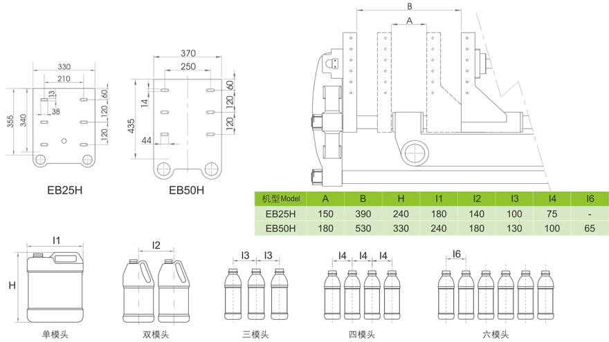 模架尺寸及適應(yīng)瓶型(mm):