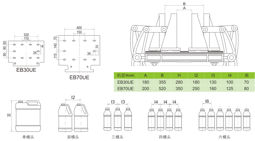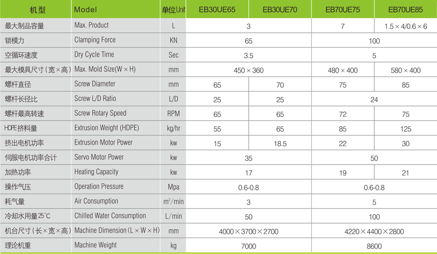 ·全機(jī)八個(gè)機(jī)械動(dòng)作(移模、合模、插筆、抬頭及伺服壁厚)均由獨(dú)立的伺服電機(jī)精密控制、驅(qū)動(dòng),按需輸出直接把電能轉(zhuǎn)換成機(jī)器動(dòng)作的機(jī)械能,相比傳統(tǒng)氣動(dòng)/液壓擠吹機(jī),在動(dòng)作部分節(jié)能約70%。