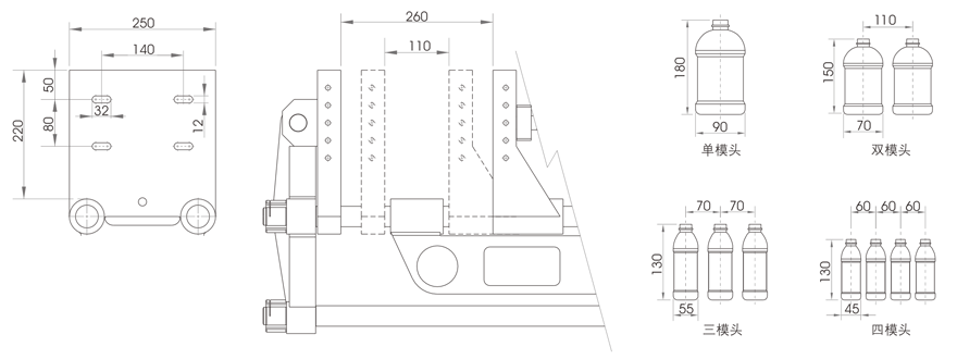 模架尺寸及適應(yīng)瓶型(mm)