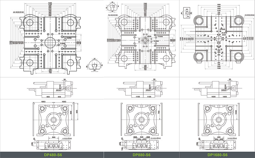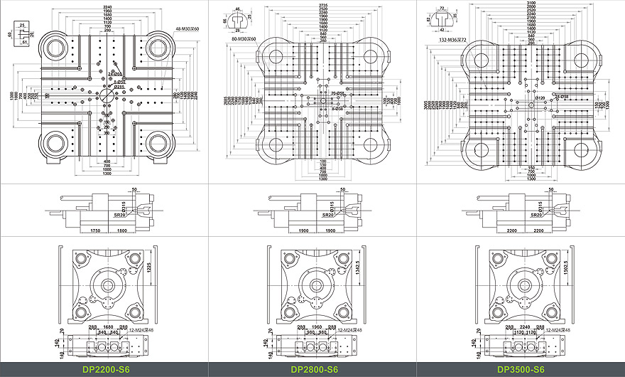 4.高剛性二板滑腳機(jī)構(gòu),消除傾斜扭矩,增大模具承受能力。
