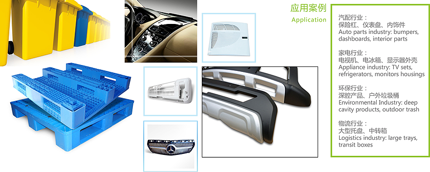 寶捷DP系列兩板大型注塑機(jī)適用深腔產(chǎn)品、家用電器、汽車配件、日用品、建筑部件、包裝用品、物流周轉(zhuǎn)箱及大型托盤等;