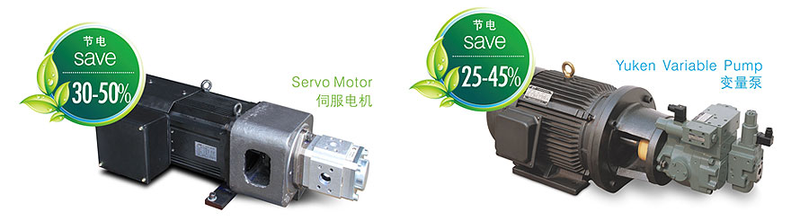 變量泵控制系統(tǒng)比常規(guī)機(jī)器節(jié)電20%~30%;伺服控制系統(tǒng)比常規(guī)機(jī)器節(jié)電30%~50%;